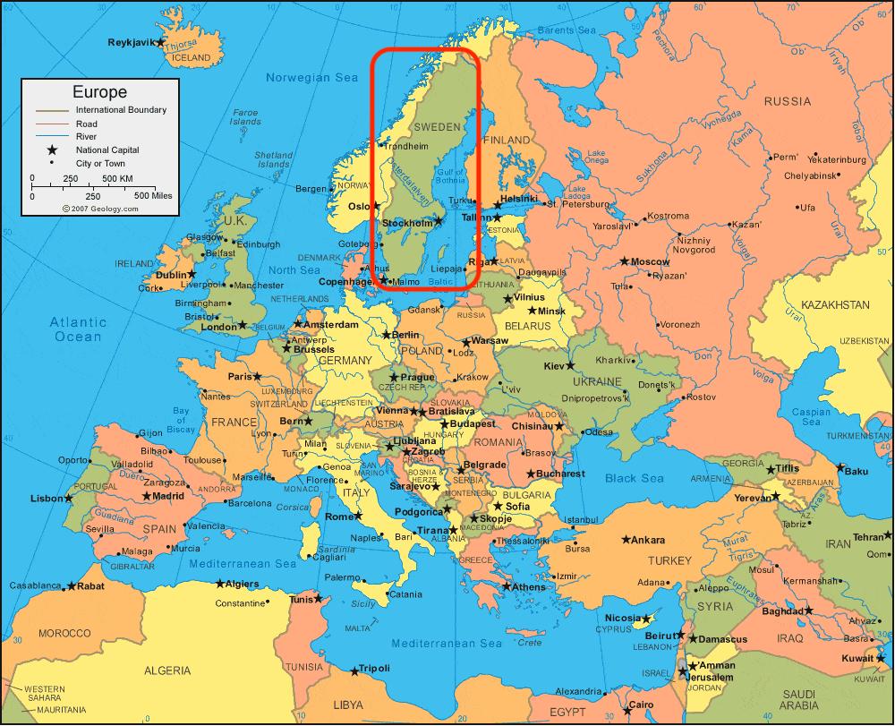 Карта Европы Швеция. Швеция карта Европы (Северная Европа - Европа) для печати. Швеция карта Европы (Северная Европа - Европа) для загрузки. Швеция (Listeni/ˈswiːdən/ swee-dən; Шведский: Sverige [ˈsværjɛ]), официально королевство Швеции (шведский: об этом звучит Konungariket Sverige), является скандинавской страной на Скандинавском полуострове в Северной Европе. Площадь 449 964 км2 (173 732 кв. миль), Швеция - 4-я по величине страна полностью в Европе, и самая большая в Северной Европе, как видно на карте Европы Швеции. Готланд и Оланд - крупнейшие острова Швеции; Вяннер и Веттерн - ее крупнейшие озера. Вянерн - третье по величине озеро в Европе, после Ладожского и Онежского озер в России